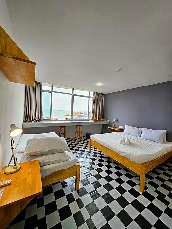 The triple room offers air conditioning, a private entrance, as well as a private bathroom boasting a walk-in shower and a bidet. The triple room is furnished with a desk and a seating area and has sea views. The unit has 2 beds.
